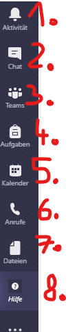 - Teams: Dieser Bereich erlaubt den schnellen Zugriff auf alle